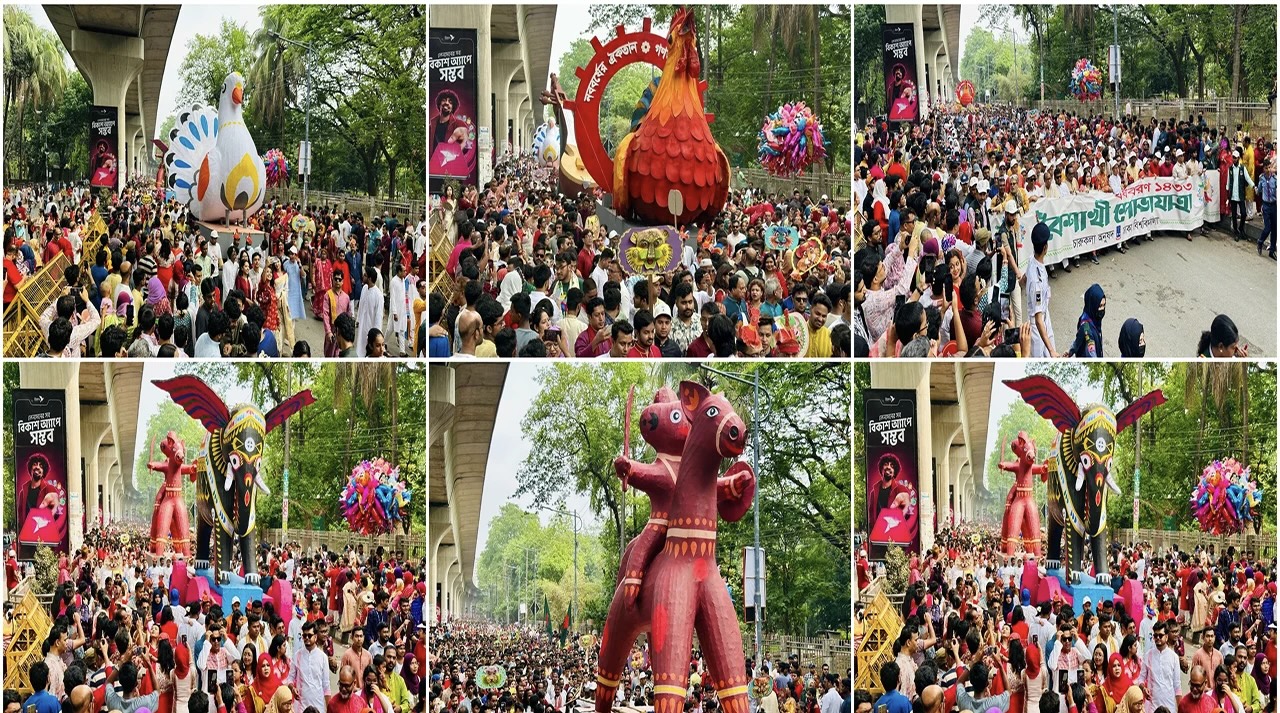 ঢাকা বিশ্ববিদ্যালয়ের চারুকলা অনুষদ থেকে বাংলা নববর্ষ ১৪৩৩ উপলক্ষে ঐতিহ্যবাহী বৈশাখী শোভাযাত্রা বর্ণাঢ্য আয়োজনের মধ্য দিয়ে শুরু হয়েছে। এবারের প্রতিপাদ্য ছিল ‘নববর্ষের ঐকতান, গণতন্ত্রের পুনরুত্থান’।মঙ্গলবার ...