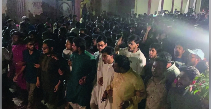 রাজশাহী বিশ্ববিদ্যালয় কেন্দ্রীয় ছাত্র সংসদ (রাকসু) নির্বাচন ঘিরে নানা অভিযোগ করেছেন জাতীয়তাবাদী ছাত্রদল সমর্থিত ‘ঐক্যবদ্ধ নতুন প্রজন্ম’ প্যানেলের ভিপি (সহসভাপতি) ও সাধারণ সম্পাদক (জিএস) প্রার্থী। তাদের অভিযোগ, নির্বাচন ঘিরে জামায়াতে ইসলামী ও ইসলামী ছাত্রশিবির অস্ত্র মজুত করেছিল। ছাত্রশিবির সংখ্যালঘু সম্প্রদায়ের শিক্ষার্থীদের ভোট না দিতে হুমকি দিয়েছে। এ ছাড়া একটি কেন্দ্রে এক ঘণ্টা ভোট বন্ধ থাকার কথা উল্লেখ করে জাল ভোটের আশঙ্কাও জানিয়েছেন ছাত্রদলের প্রার্থীরা।বৃহস্পতিবার (১৬ অক্টোবর) বিকেল সাড়ে ৩টার দিকে ক্যাম্পাসের পরিবহন মার্কেটের সামনে এক সংবাদ সম্মেলনে ছাত্রদলের প্রার্থীরা এসব অভিযোগ করেন। সংবাদ সম্মেলনে ছাত্রদলের ভিপি প্রার্থী শেখ নূর উদ্দিন আবির বলেন, সকালে নির্বাচনের প্রথম দিকে সুষ্ঠু পরিবেশ ছিল। আমরা সেটি গণমাধ্যমকে জানিয়েছি। কিন্তু পরক্ষণেই আমাদের ক্যাম্পাসে বহিরাগতদের আনাগোনা বাড়তে থাকে। বিশেষ করে অভিযোগ এসেছে, স্টেশন বাজার, বিনোদপুর ফটক, চারুকলা ফটক এবং কাজলা ফটক দিয়ে লাল জার্সি পরা ‘সম্মিলিত শিক্ষার্থী জোট’ লেখা অগণিত বহিরাগত লোক প্রবেশ করছে। বহিরাগতদের এভাবে তাদের প্যানেলের টি-শার্ট পরিয়ে ক্যাম্পাসে ঢুকিয়ে অস্থিতিশীল পরিবেশ সৃষ্টি করার পাঁয়তারা চলছে। বিশ্ববিদ্যালয়ের প্রধান ঘটকের বিপরীতে যে বেতারের মাঠ রয়েছে, সেখানে কয়েক হাজার নেতাকর্মী ও তাদের ক্যাডার বাহিনী অস্ত্র মজুত রেখেছে উল্লেখ করে সাংবাদিকদের এর সত্যতা যাচাইয়ের আহ্বান জানান ছাত্রদলের ভিপি প্রার্থী। তিনি আরও অভিযোগ করেন, রাবি শাখা শিবিরের সাবেক এক সভাপতিসহ জামায়াতের নেতাদের প্রেস কার্ড প্রদান করা হয়েছে। তারা ক্যাম্পাসে প্রভাব বিস্তারের চেষ্টা করেছে বলেও তিনি অভিযোগ করেন।