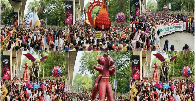 ঢাকা বিশ্ববিদ্যালয়ের চারুকলা অনুষদ থেকে বাংলা নববর্ষ ১৪৩৩ উপলক্ষে ঐতিহ্যবাহী বৈশাখী শোভাযাত্রা বর্ণাঢ্য আয়োজনের মধ্য দিয়ে শুরু হয়েছে। এবারের প্রতিপাদ্য ছিল ‘নববর্ষের ঐকতান, গণতন্ত্রের পুনরুত্থান’।মঙ্গলবার ...